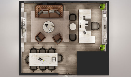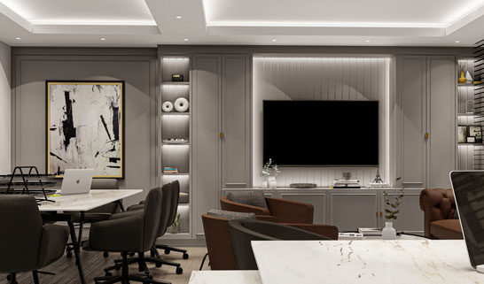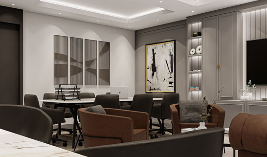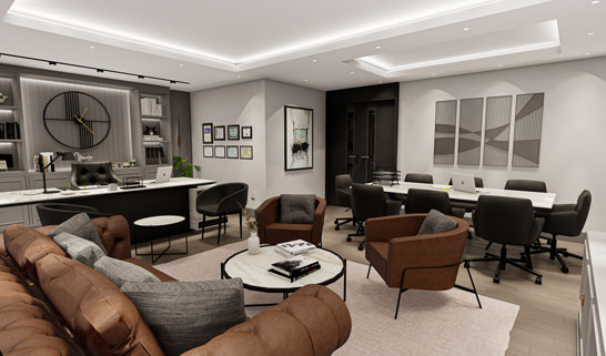 The manager's office emphasizes the leadership atmosphere by combining functionality and comfort. Modern lighting solutions and custom furniture make this area one of the highlights, enhancing the brand value and prestige.