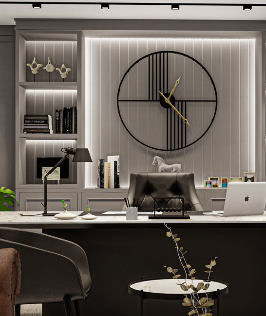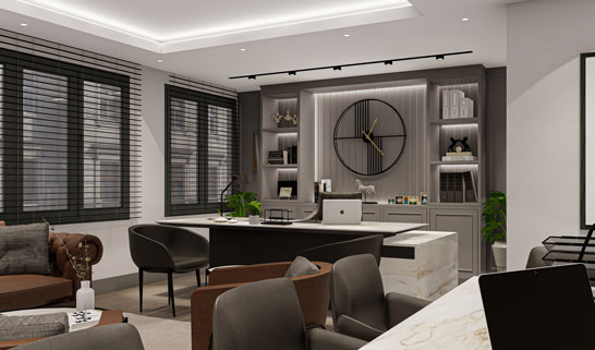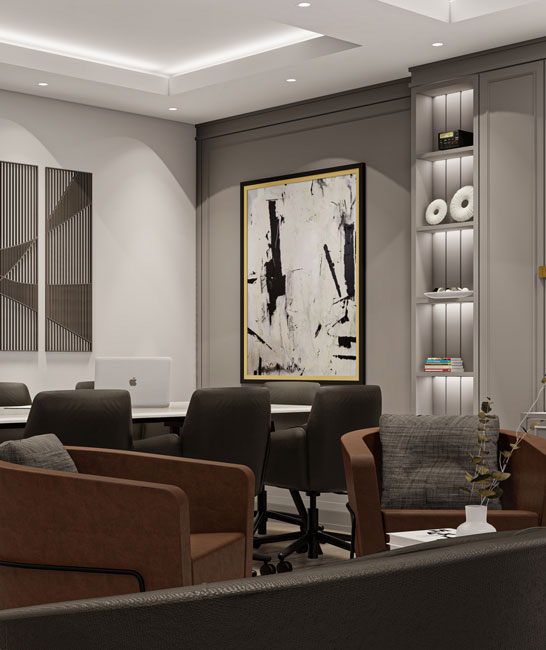 Müdür odası, işlevselliği ve konforu bir araya getirerek liderlik atmosferini vurgular. Modern aydınlatma çözümleri ve özel mobilyalar, bu alanı marka değeri ve prestij ile öne çıkaran unsurlardan biri haline getirir.