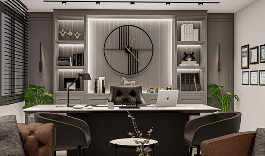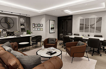 Müdür odası, işlevselliği ve konforu bir araya getirerek liderlik atmosferini vurgular. Modern aydınlatma çözümleri ve özel mobilyalar, bu alanı marka değeri ve prestij ile öne çıkaran unsurlardan biri haline getirir.
